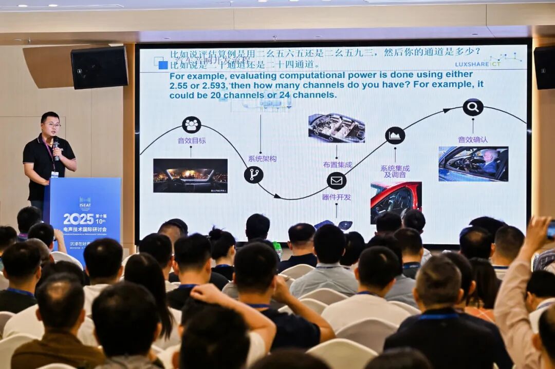 立訊精密高級經(jīng)理魏鵬江博士以《聲學仿真在汽車音響設計中的應用》為題發(fā)表演講,結(jié)合車載音頻領域的前沿需求,與現(xiàn)場專家學者展開深度交流與探討,充分展現(xiàn)了立訊精密在車載音頻系統(tǒng)設計方面的技術積累與創(chuàng)新能力。